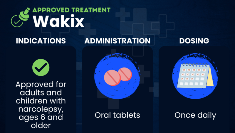 Wakix (pitolisant) is an oral therapy approved to treat excessive daytime sleepiness (EDS) and cataplexy in adults and children with narcolepsy.
